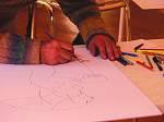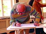 Adam Lude Döring in der Galerie Bayer. Anläßlich des Bietigheimer XXL Tages malt oder zeichnet Adam Lude Döring einen für diesen Tag gemachten Siebdruck zum Unikat.
