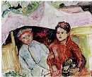 Mense (1886-1965)Zwei Mädchen mit Katzen 1920 Linolschnitt 30 x 21,3 cm signiert Christop