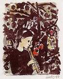 Herbig (1889-1971)Blockflötenspieler 1946 Lithographie aquarelliert 18,5 x 14,5 cm signiert und datiert Käthe