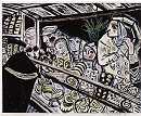 Hubbuch (1891-1979)Vor dem Bäckerladen 1958 Aquarell über Zinkätzung 42,1 x 53,3 cm bezeichnet "Probedruck" signiert und datiert Carlo